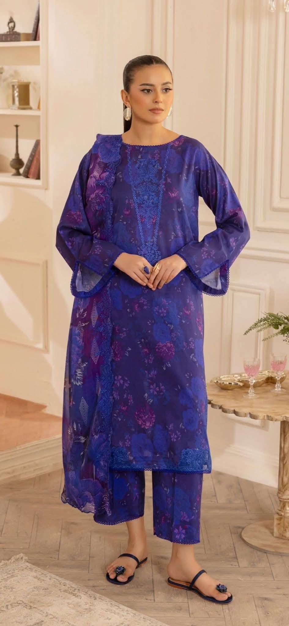 Ziva Digital Printed Embroidered  Lawn 3 Piece