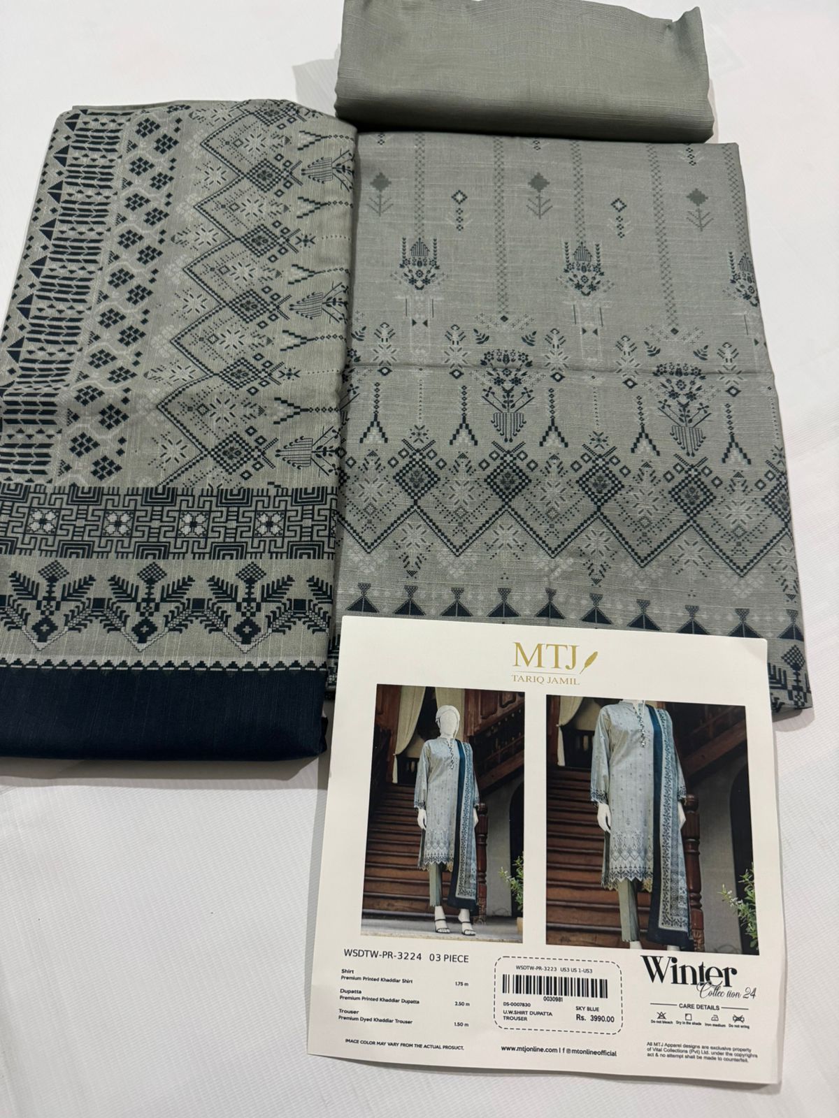 Shirt Premium Printed Khaddar - 1.75mDupatta Premium Printed Khaddar - 2.50mTrouser Premium Dyed Khaddar - 1.50m